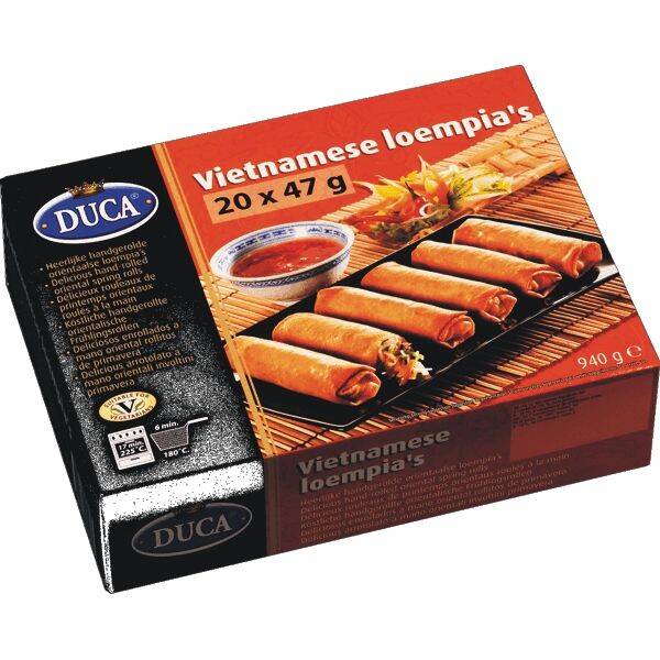 Kool, deeg: (TARWEBLOEM, water, zout, palmolie), vermicelli (mungobonen), taugé, wortel, palmolie, prei, zout, suiker, aroma, peper